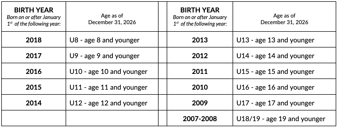 Deadlines apply for making changes to age group. See 2026 Deadlines tab above.